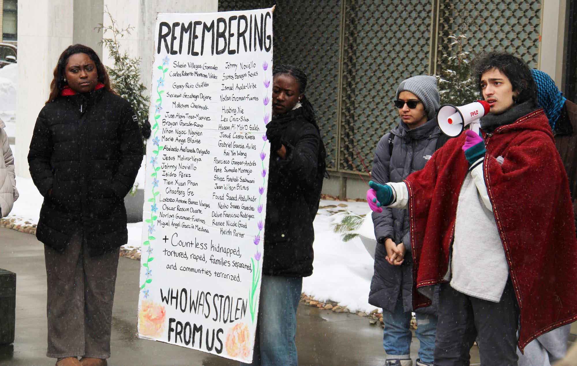 “We’re standing on the campus of one of the biggest and most influential tech schools in the country, and what is that tech going for? It’s being used to surveil in the country and outside of it, in Minnesota, in LA, in Palestine, and all over the world,” one speaker noted.