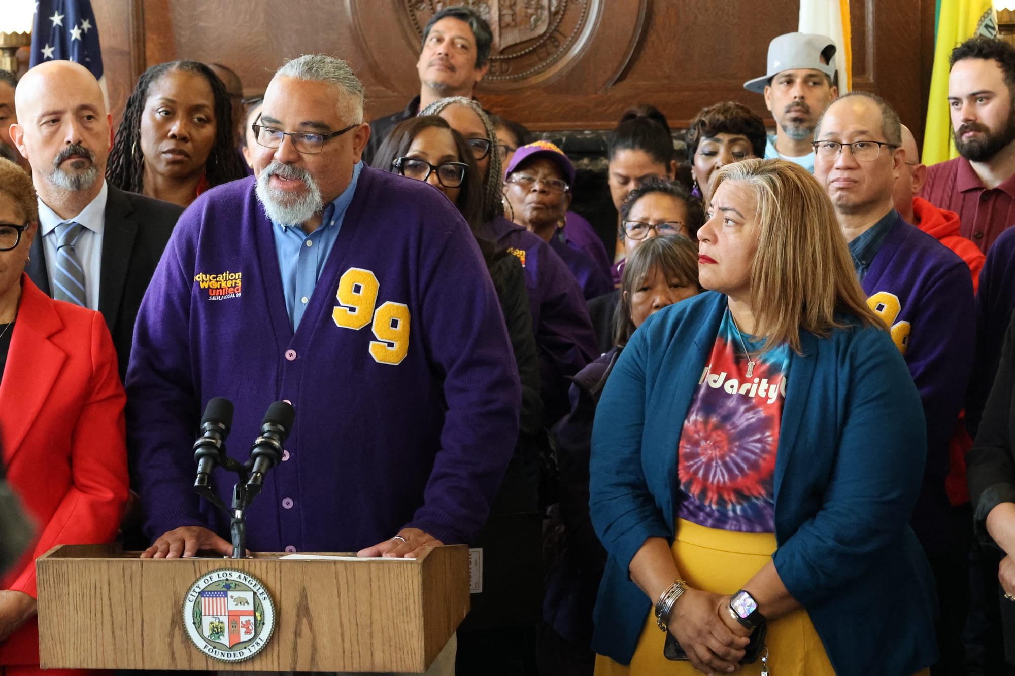 In the meeting with Bass, with more than two dozen rank-and-file members present, rank-and-file union leaders repeatedly called out LAUSD for refusing to dip into its $5 billion reserve fund, a move that budget technocrats feared could affect their credit rating.