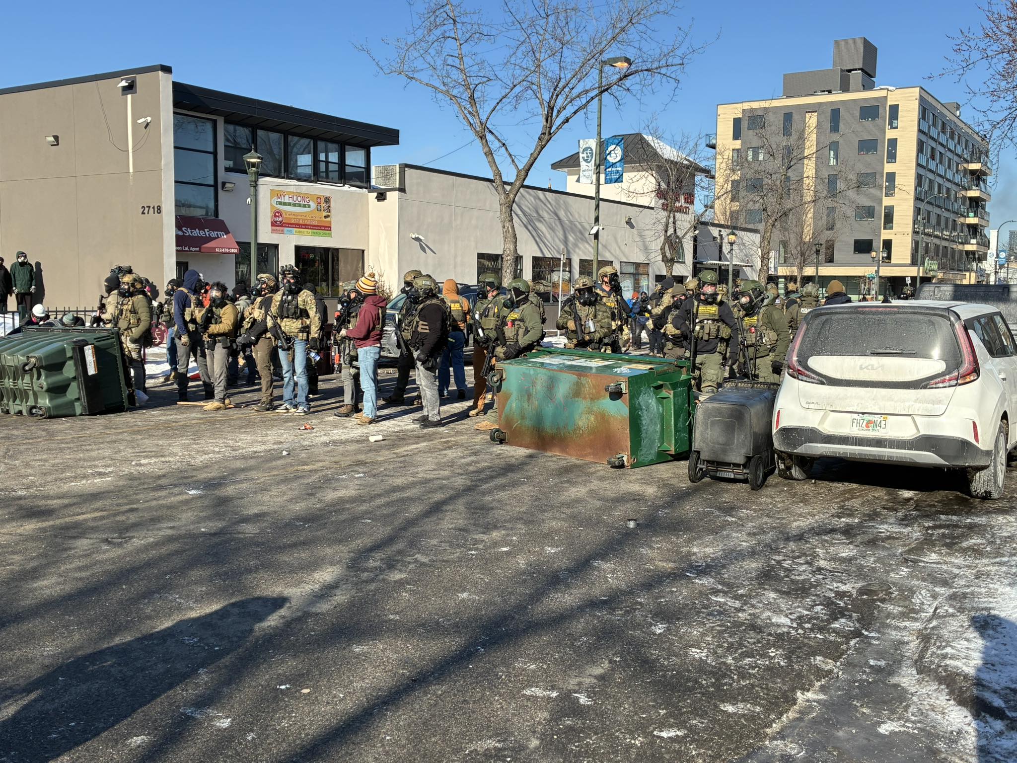 On Friday morning, as the general strike was beginning, I spoke with CWA Local 7520 President Kieran Knutson. He told me that after helping lead the strike he was hoping to unplug for the weekend before getting back into the fight. However, Saturday afternoon, when I checked his Facebook, I found posts about barricades on 26th St. between Nicollet and Blaisdell set up in front of machine gun-wielding ICE agents.