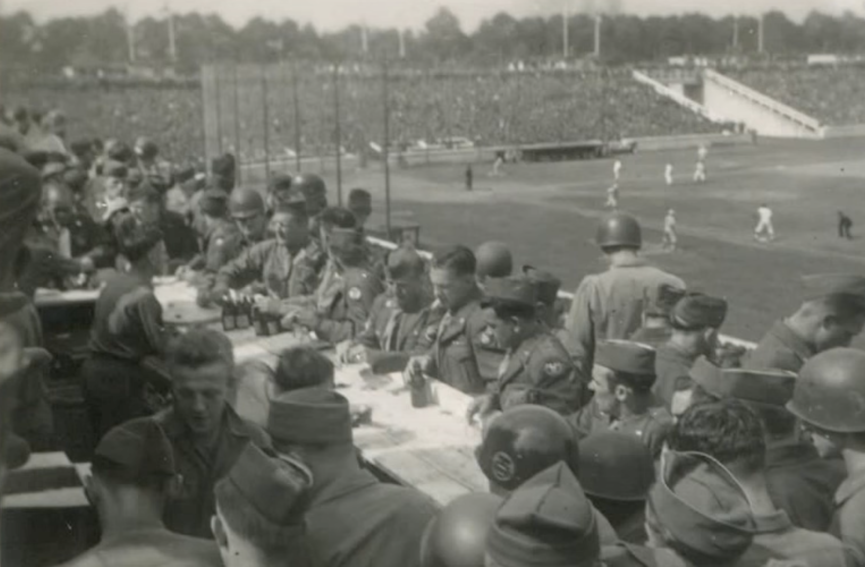The energy in Nuremberg was electric. Stars and Stripes wrote that “[T]he game was so close all the way through that it kept the crowd of over fifty thousand on its feet cheering wildly and rewarding unfavorable decisions with sounds as wild as any ever to emerge from Ebbets Field or the Polo Grounds.”