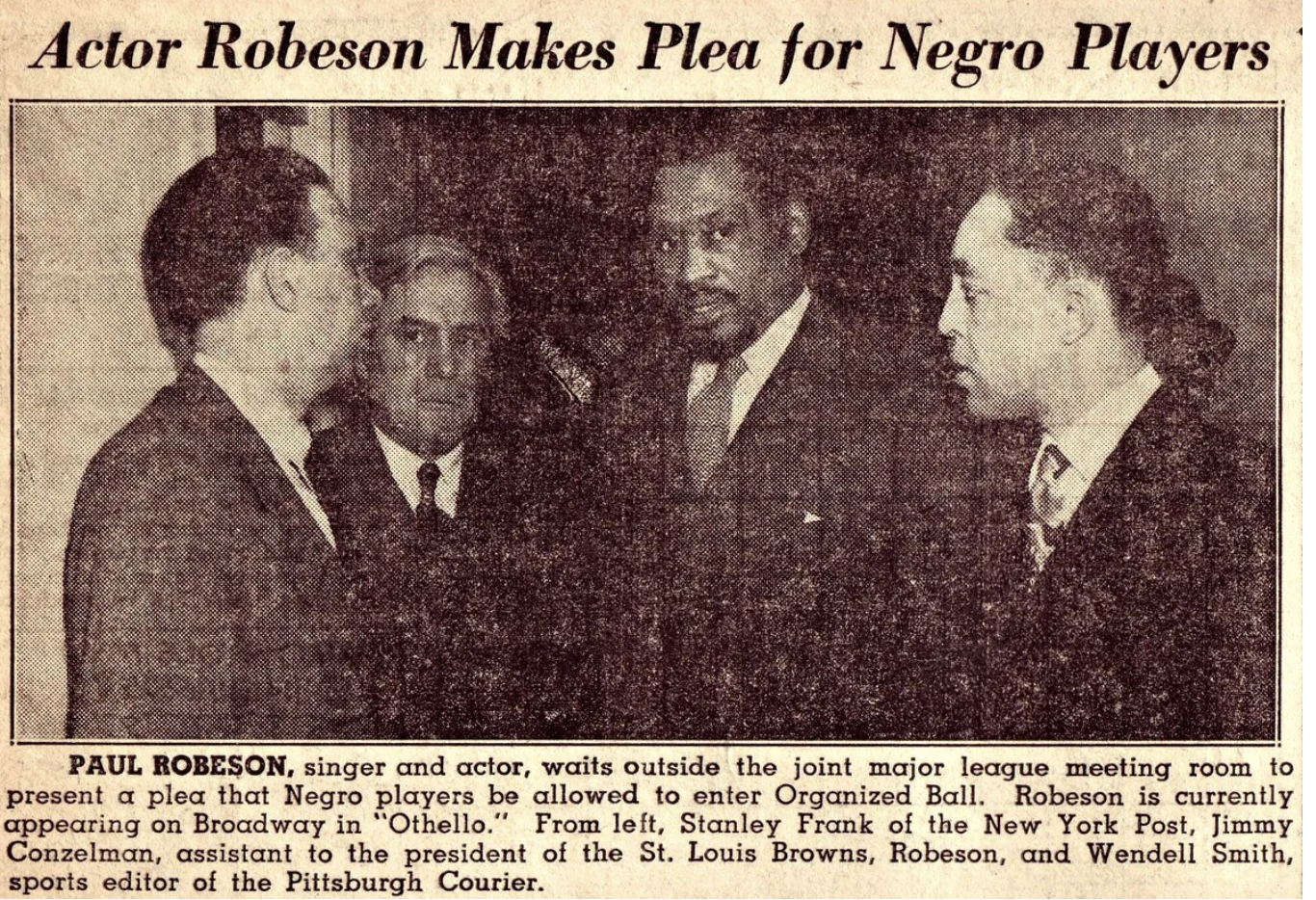 In 1933, The Pittsburgh Courier’s Chester Washington ran a four-month feature with interviews of white players and executives about the color line in baseball. Wendell Smith, who joined the newspaper in 1937, used his sports column to call for integration, and lobbied MLB executives behind the scenes about which Black ball players they should try out.