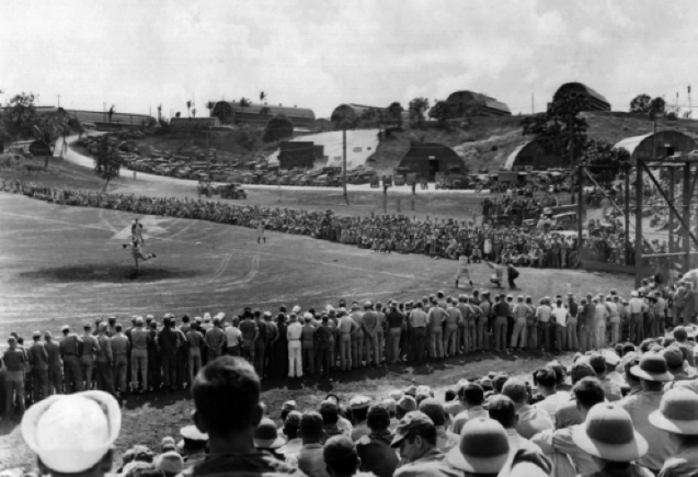 In a David vs. Goliath story played out in front of 50,000 GIs, the integrated All-Stars faced the 71st Infantry Division’s Red Circlers led by Harry Walker, the future leader of a strike attempt to keep Jackie Robinson out of Major League Baseball a year later. The team featured three All-Stars: Walker, Ewell Blackwell, and Johnny Wyrostek, more All-Stars than the 1945 World Series-winning Detroit Tigers.